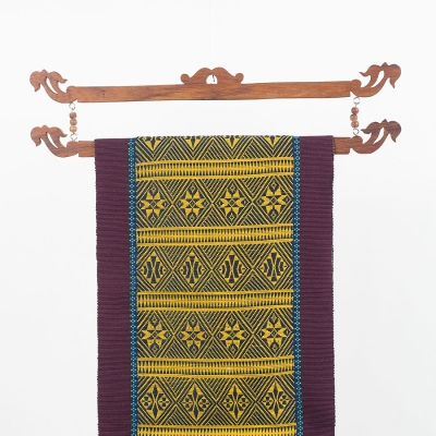 These tablerunners are backstrap woven in remote villages in Rakhine State. Backstrap looms allow women to work from home, patiently turning stories into abstract patterns. Hla Day has worked together with this group inspiring new color schemes and supporting the continuity of this valuable weaving tradition.