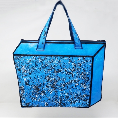 Made with recycled LDPE plastic bags, cotton lined and zipper