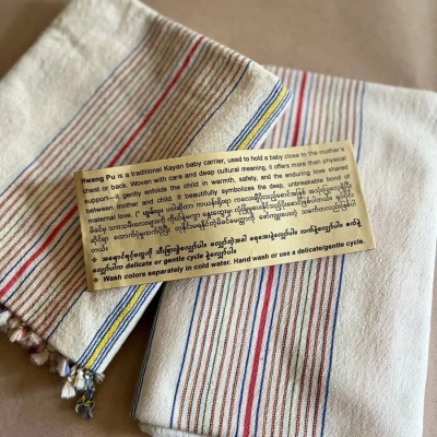 Hwan Pu is a traditional Kayan baby carrier, used to hold a baby close to the mother's chest or back. Woven with care and deep cultural meaning, it offers mopre than physical support, it gently enfolds the child in warmth, safety and the enduring love shared between mother and child. It beautifully symbolizes the deep, unbreakable bond of maternal love.