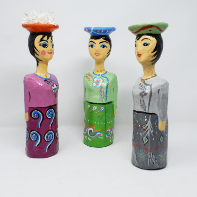 Decorative papier-mâché Myanmar lady doll, beautifully crafted to serve as a holder for flowers and candles. A charming piece that adds cultural elegance to any space.