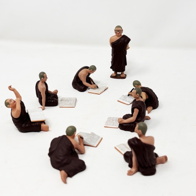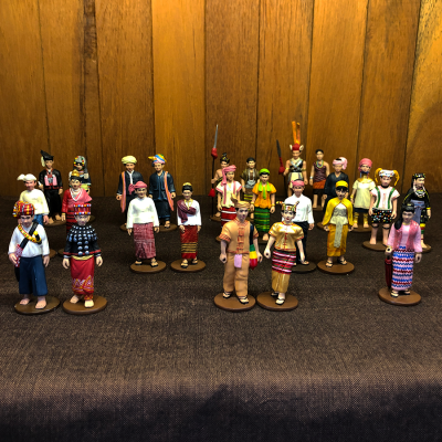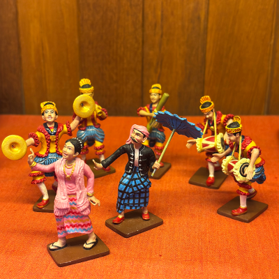 Collectible tin figurines depicting unique aspects of tradition and daily life for Myanmar's Buddhist monks and nuns.