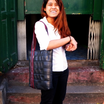 Who would guess Yangon driven sidecar innre tubes? Lined with cotton, this tube tote is perfect for your laptop, books and anything you can't live without!