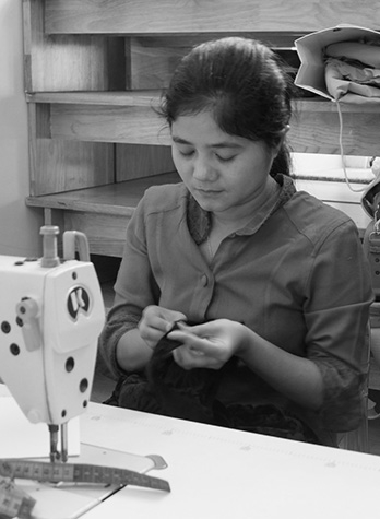 Kay Khine is a professional seamstress who previously worked with French designer Charlotte Barjou. During her time at the Charlotte Barjou studio in Yangon, she gained valuable experience in garment pattern and design.